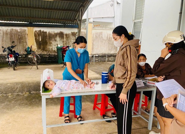 Công tác cân đo trước khi cho trẻ uống Vitamin A