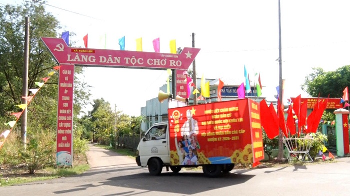 Làng dân tộc Chơ Ro, ấp Trung Sơn, xã Xuân Lộc, không khí trước ngày bầu cử rộn ràng, cờ, hoa được trang trí đẹp mắt, công tác tuyên truyền cổ động được triển khai rộng khắp trên các nẻo đường và đến từng hộ dân. Ông Tòng Văn Út, người đồng bào dân tộc Chơ Ro ấp Trung Sơn: Gia đình tôi đã nhận được thẻ cử tri rồi, cán bộ căn dặn phải đi đông đủ. Mình cũng nhắc nhở gia đình tranh thủ đi bầu vào ngày 15 tháng 3 tới đây. Bà con tranh thủ đi bầu sớm để kịp thời và thời tiết cũng mát mẻ hơn.