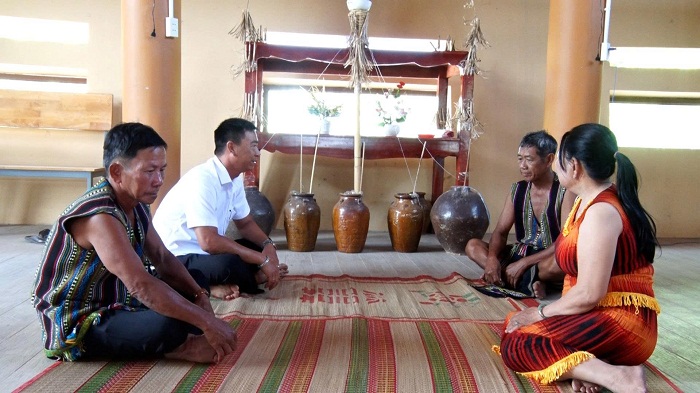 Bí thư Chi bộ ấp Trung Sơn gặp gỡ người uy tín tại làng dân tộc Chơ Ro