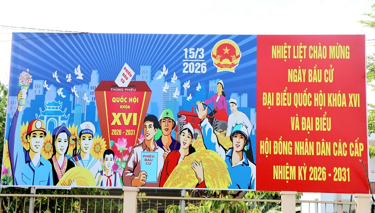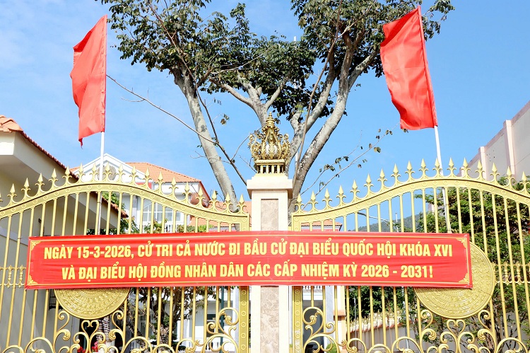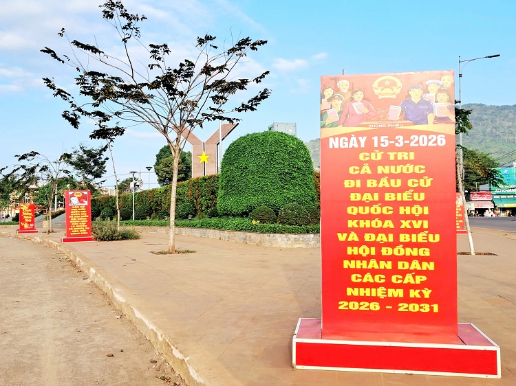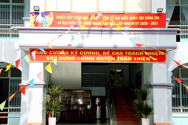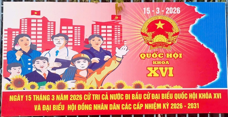 Tại trụ sở các cơ quan, đơn vị, trường học cũng được trang hoàng rực rỡ cờ hoa, pano và băng rôn tuyên truyền sự kiện trọng đại này. Theo đó, cuộc bầu cử ĐBQH khóa XVI và đại biểu HĐND các cấp nhiệm kỳ 2026 - 2031 sẽ diễn ra vào ngày 15/3 tới đây.