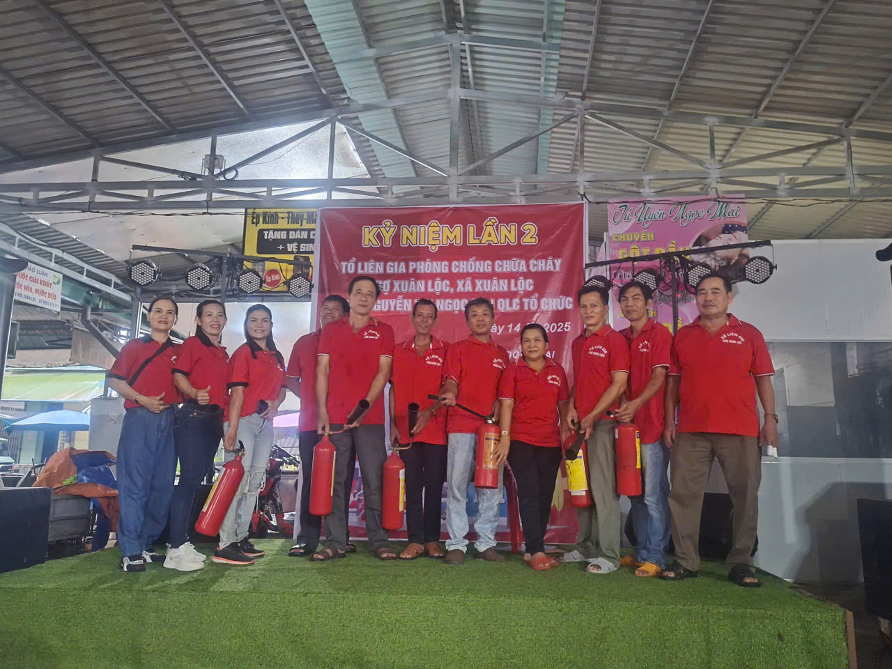 Bà Nguyễn Thị Ngọc Mai - Trưởng Ban quản lý Chợ Xuân Lộc tự bỏ tiền cá nhân trang bị bình chữa cháy cho các thành viên Tổ liên gia phòng cháy chữa cháy của chợ