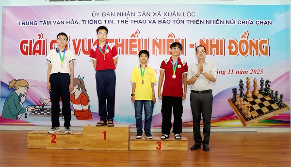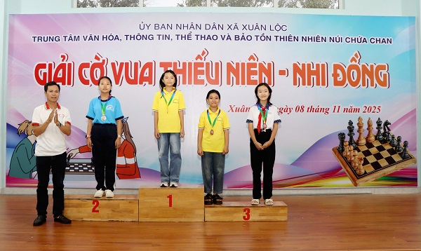 Sau 2 ngày thi đấu sôi nổi và đầy kịch tính, chiều 9-11, Trung tâm Văn hoá, Thông tin, Thể thao và Bảo tồn thiên nhiên núi Chứa Chan xã Xuân Lộc tổ chức bế mạc Giải cờ vua Thiếu niên – Nhi đồng năm 2025. Tham dự lễ bế mạc có đồng chí Vy Thị Nhung – Phó Giám đốc Trung tâm Văn hoá, Thông tin, Thể thao và Bảo tồn thiên nhiên núi Chứa Chan, cùng đại diện Ban giám hiệu các trường và đông đảo vận động viên, phụ huynh.
