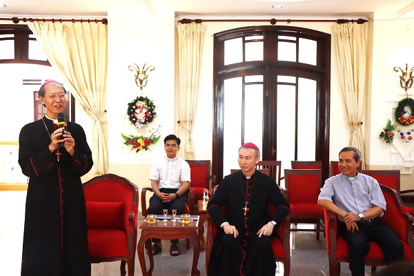 Giám mục Chính tòa Giáo phận Xuân Lộc Đỗ Văn Ngân phát biểu đáp từ đoàn công tác của xã Xuân Lộc đến thăm, chúc mừng Giáng sinh năm 2025