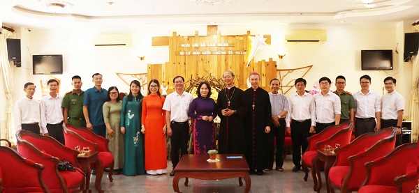 Tiếp đoàn công tác của xã có: Giám mục Chính tòa Giáo phận Xuân Lộc Đỗ Văn Ngân; cùng các chức sắc, chức việc, giáo dân tiêu biểu.