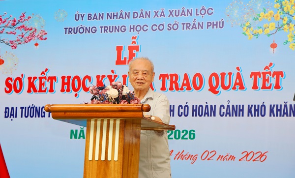 Sáng ngày 04/02, Đại tướng Phạm Văn Trà, nguyên Ủy viên Bộ Chính trị, nguyên Bộ trưởng Bộ Quốc phòng, đã đến dự lễ sơ kết học kỳ I và trao tặng 50 phần quà cho học sinh có hoàn cảnh khó khăn tại Trường THCS Trần Phú, xã Xuân Lộc.