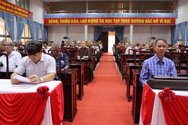 Các đại biểu dự hội nghị tuyên truyền, phổ biến, giáo dục cho chức sắc, chức việc, nhà tu hành, tín đồ các tôn giáo, người đại diện hoặc thành viên Ban Quản lý cơ sở tín ngưỡng