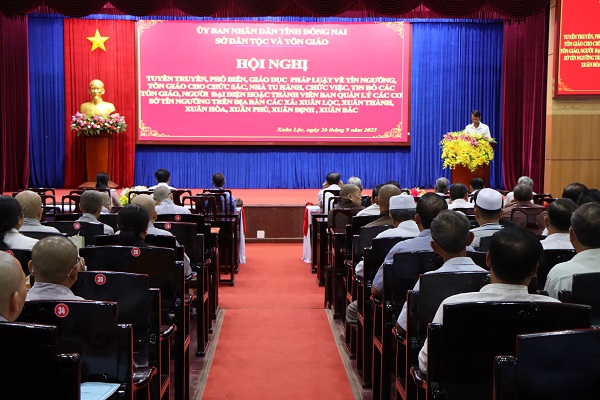 Sáng ngày 26/9, tại Trung tâm hội nghị xã Xuân Lộc, Sở Dân tộc và Tôn giáo tỉnh Đồng Nai tổ chức tuyên truyền, phổ biến, giáo dục cho chức sắc, chức việc, nhà tu hành, tín đồ các tôn giáo, người đại diện hoặc thành viên Ban Quản lý cơ sở tín ngưỡng tại các xã: Xuân Lộc, Xuân Định, Xuân Bắc, Xuân Phú và Xuân Hòa.