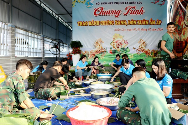 Ngay từ sáng sớm, không khí tại điểm gói bánh đã trở nên rộn ràng, ấm áp nghĩa tình. Cán bộ, hội viên, phụ nữ xã Xuân Lộc phối hợp cùng cán bộ, chiến sĩ Trung đoàn Đồng Nai và người dân địa phương cùng nhau phân công công việc, người vo gạo, người rửa lá, người gói bánh… Tất cả đều chung một tấm lòng sẻ chia, mong muốn góp phần mang đến cái Tết đủ đầy hơn cho những phụ nữ nghèo, phụ nữ có hoàn cảnh khó khăn trong cuộc sống. Để có kinh phí thực hiện hoạt động ý nghĩa này, Hội Liên hiệp phụ nữ xã và các chi hội đã tích cực vận động mạnh thường quân, đóng góp mua gạo nếp, thịt, đậu xanh và các nguyên liệu cần thiết. Mỗi chiếc bánh được gói ghém không chỉ bằng đôi tay khéo léo mà còn bằng sự yêu thương, tinh thần trách nhiệm của cán bộ, hội viên phụ nữ đối với hội viên phụ nữ khó khăn.