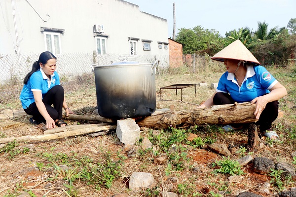 Những nồi bánh nghĩa tình được cán bộ, hội viên, Phụ nữ xã Xuân Lộc nấu và chuẩn bị để trao tặng cho phụ nữ nghèo, phụ nữ khó khăn