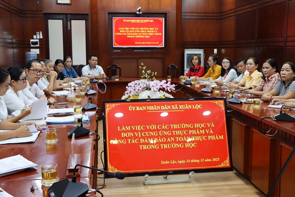 Chiều ngày 14/11, đồng chí Lê Khắc Sơn – Chủ tịch UBND xã Xuân Lộc cùng đại diện lãnh đạo các ngành chức năng đã có buổi làm việc với các trường học trên địa bàn và các đơn vị cung cấp thực phẩm nhằm rà soát, đánh giá việc đảm bảo an toàn thực phẩm trong công tác tổ chức bữa ăn bán trú cho học sinh