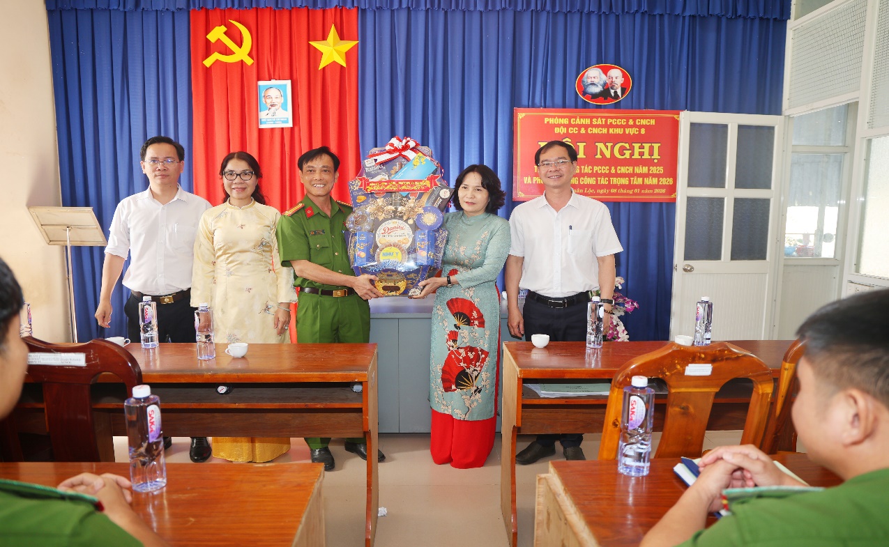 Đồng chí Nguyễn Thị Cát Tiên, Bí thư Đảng ủy, Chủ tịch HĐND xã chúc tết đơn vị Đội quản lý diện Xuân Lộc