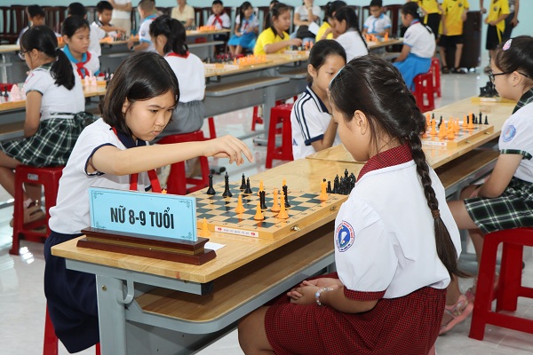 Các em tham gia Giải cờ vua thiếu niên - nhi đồng được tổ chức tại Nhà Thiếu nhi