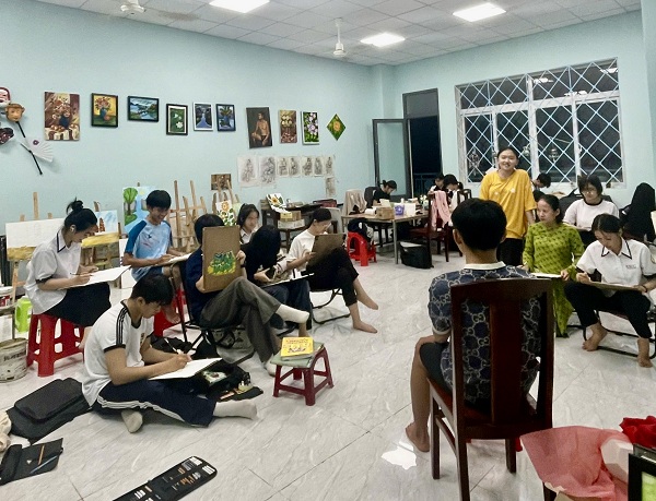 Một buổi học của các em trong lớp vẽ được tổ chức tại Nhà Thiếu nhi xã Xuân Lộc