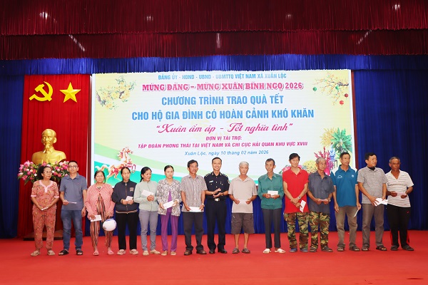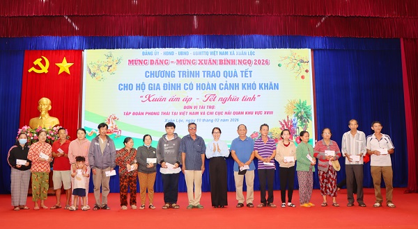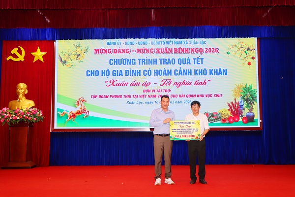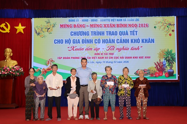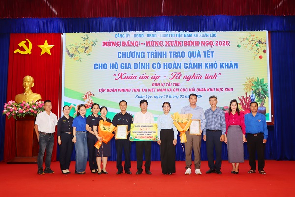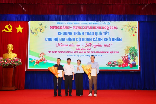 Nhân dịp Tết Nguyên đán Bính Ngọ năm 2026, sáng ngày 10/02, Đảng uỷ - HĐND - UBND - UBMTTQVN xã Xuân Lộc phối hợp với Tập đoàn Phong Thái Việt Nam và Chi cục Hải Quan khu vực XVIII tổ chức chương trình trao tặng quà tết cho các hộ gia đình có hoàn cảnh khó khăn trên địa bàn xã.