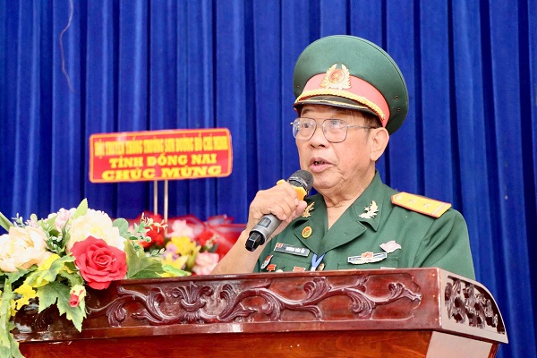 Đồng chí Dương Văn Ổn, Chủ tịch Hội TTTS - Đường Hồ Chí Minh tỉnh Đồng Nai phát biểu tại hội nghị