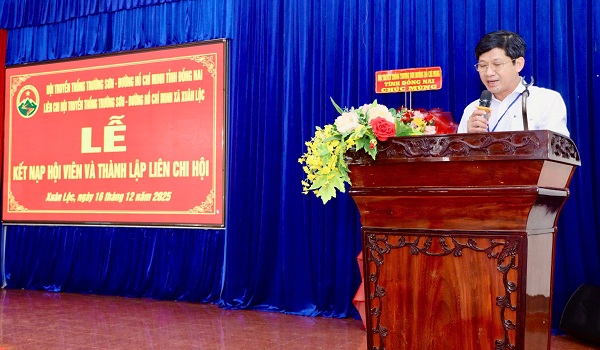 Sáng 16-12, Hội Truyền thống Trường Sơn (TTTS) – Đường Hồ Chí Minh Tỉnh Đồng Nai phối hợp với Đảng uỷ xã Xuân Lộc tổ chức lễ kết nạp hội viên và công bố Quyết định thành lập Liên chi hội Truyền thống Trường Sơn - Đường Hồ Chí Minh xã Xuân Lộc.