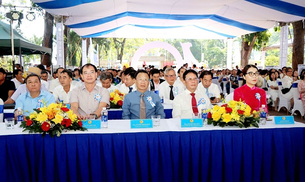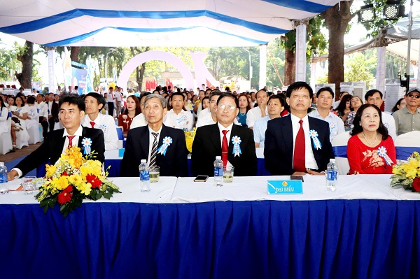 Các đại biểu nguyên là hiệu trưởng và hiệu trưởng đương nhiệm của Trường THPT Xuân Lộc tại buổi lễ