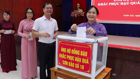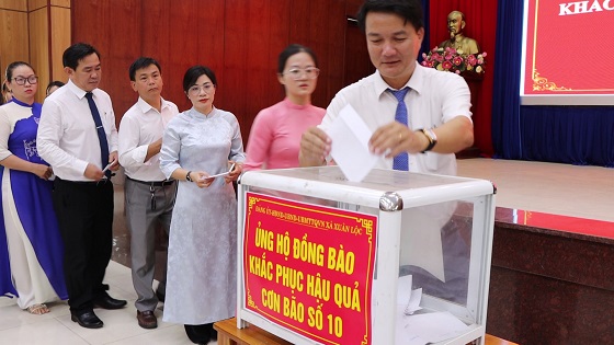 Nhằm kịp thời các nguồn lực đóng góp hỗ trợ đồng bào chịu thiệt hại nặng nề do cơn bão số 10 gây ra, sáng ngày 6/10, ngay sau lễ chào cờ đầu tuần, Đảng uỷ - HĐND - UBND - Uỷ ban MTTQ xã Xuân Lộc tổ chức phát động ủng hộ đồng bào tại các vùng bị thiệt hại. Tham gia buổi phát động có đồng chí Nguyễn Thị Cát Tiên - Bí thư Đảng uỷ - Chủ tịch HĐND xã; đồng chí Ngô Thị An - Phó Bí thư Thường trực Đảng uỷ xã; đồng chí Lê Khắc Sơn - Chủ tịch UBND xã cùng đông đảo cán bộ công chức, viên chức, chiến sĩ lực lượng vũ trang, người lao động đang công tác tại địa phương.