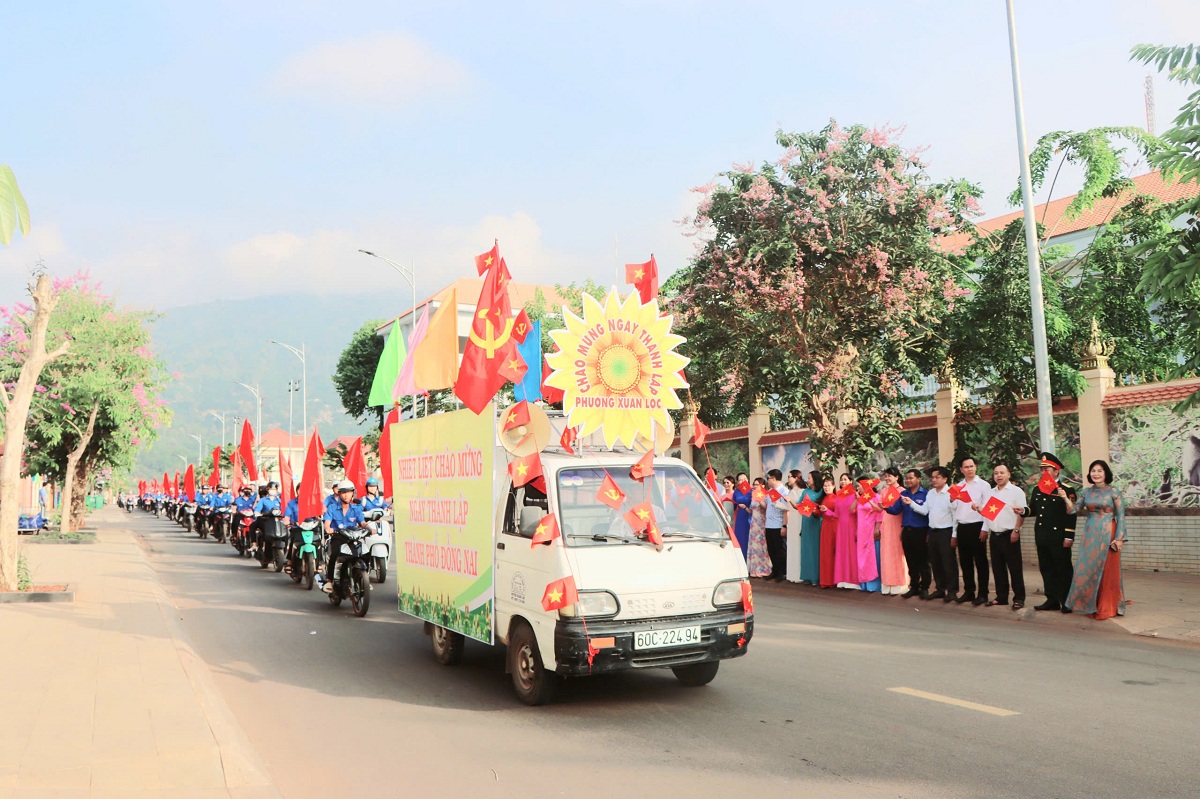 Đoàn gồm 3 xe tuyên truyền lưu động cùng xe của các đoàn viên thanh niên xã lộ trình xuất phát từ đường Hoàng Đình Thương tới khu vực Quảng trường 9/4, sau đó đi qua nhiều tuyến đường trên địa bàn xã Xuân Lộc. Các xe hoa được trang trí rực rỡ, truyền tải nhiều thông điệp lịch sử, truyền thống, văn hóa và nêu bật chào mừng sự kiện thành lập phường Xuân Lộc vào ngày 30/4 tới.