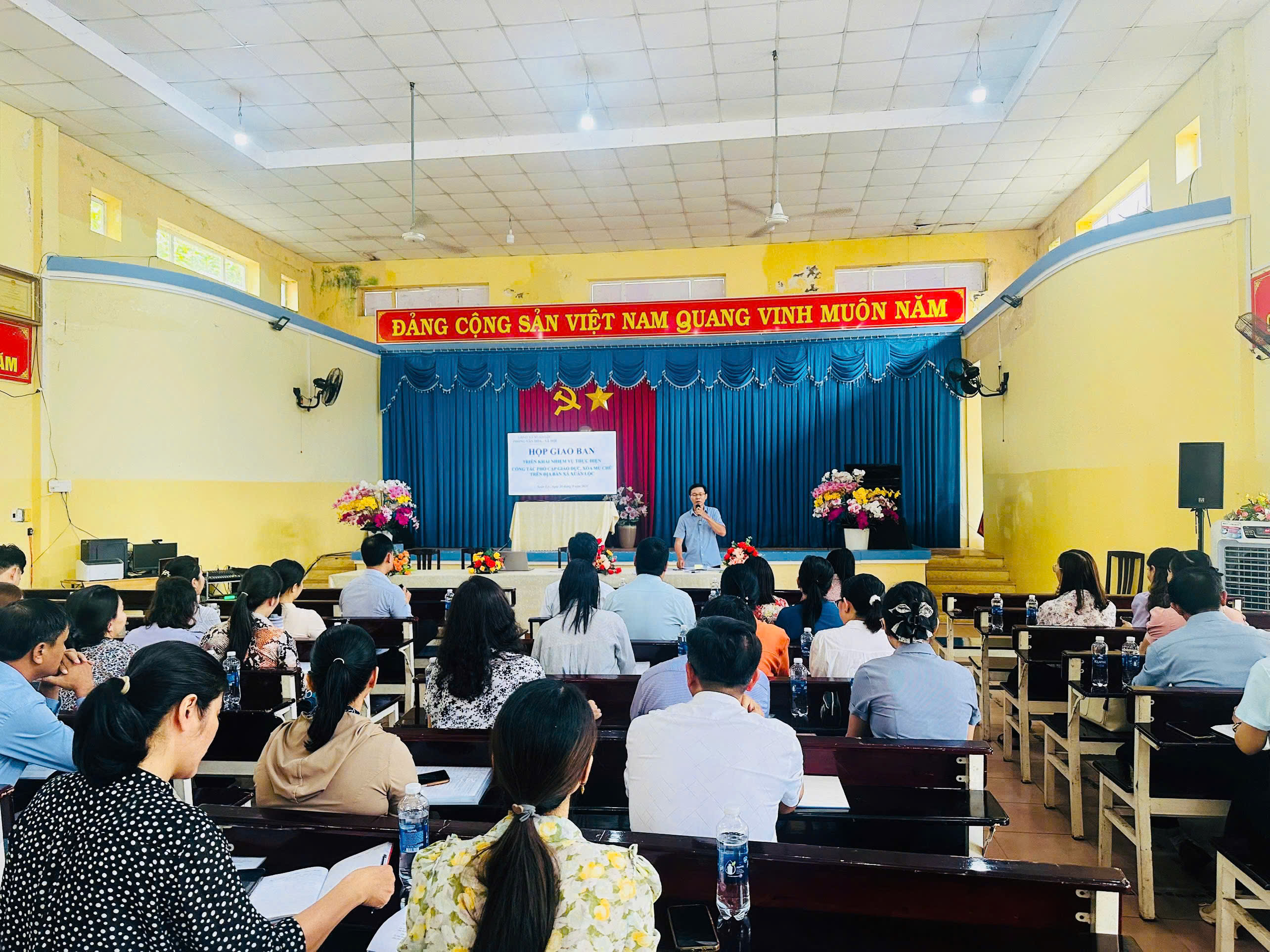Chiều ngày 30/9/2025, tại Trường THCS Phan Bội Châu, Phòng Văn hóa - Xã hội xã Xuân Lộc tổ chức Hội nghị giao ban công tác Phổ cập giáo dục và xóa mù chữ tháng 9/2025. Đồng chí Trần Quang Thắng - Đảng ủy viên, Trưởng Phòng Văn hóa - Xã hội chủ trì hội nghị.