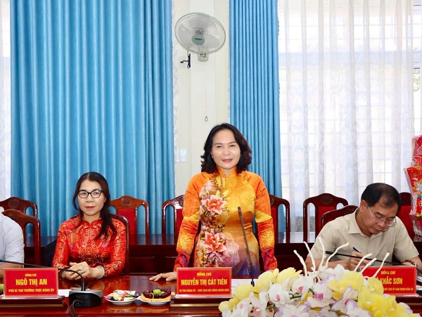 Đồng chí Nguyễn Thị Cát Tiên, Bí thư Đảng uỷ, Chủ tịch HĐND xã phát biểu tại buổi họp mặt