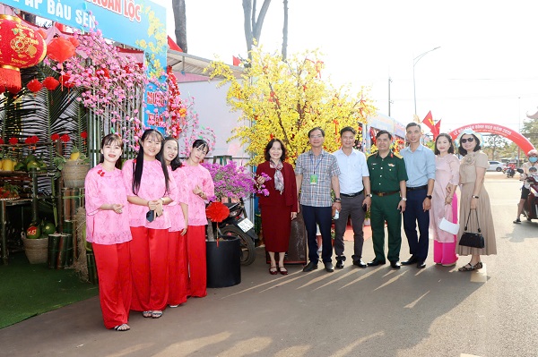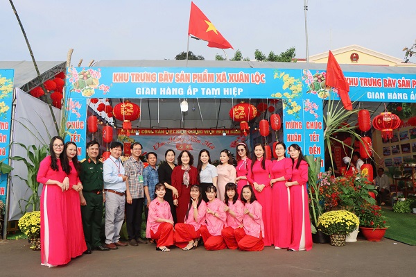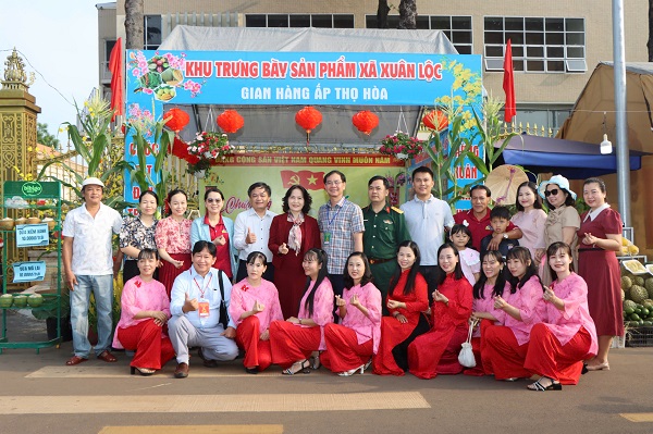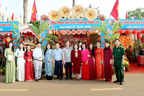 Lãnh đạo xã Xuân Lộc tham quan chụp hình lưu niệm tại các gian hàng trưng bày sản phẩm