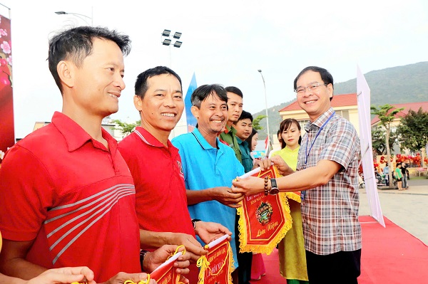 Lãnh đạo xã Xuân Lộc trao cờ lưu niệm cho các đơn vị.