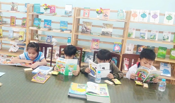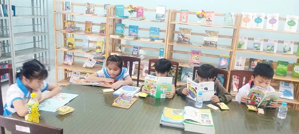 Học sinh chăm chú đọc sách tại thư viện xã Xuân Lộc
