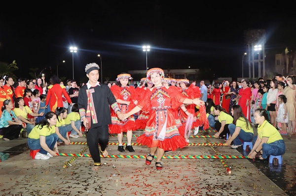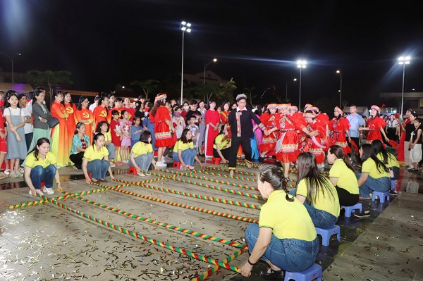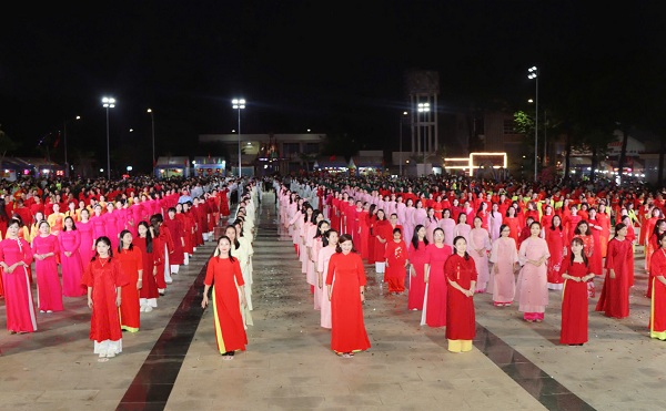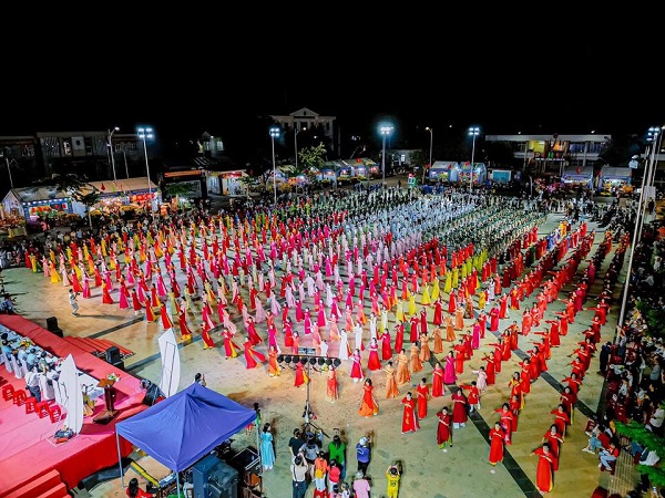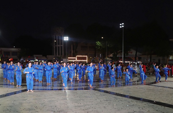 Màn đồng diễn dân vũ với sự tham gia của hơn 1.000 vũ công đến từ các ấp, trường học và học sinh các trường THPT trên địa bàn xã