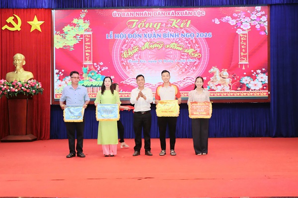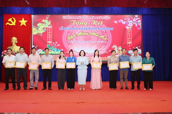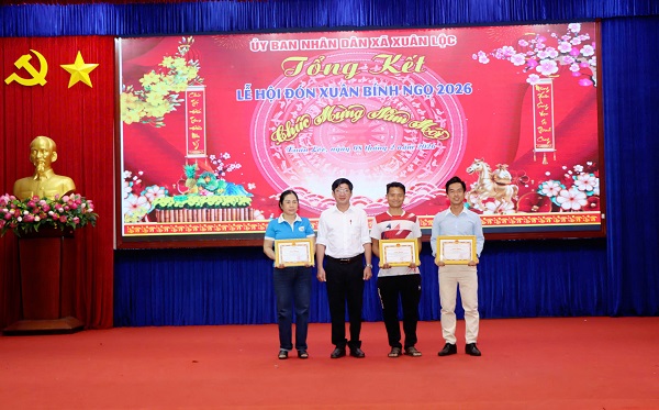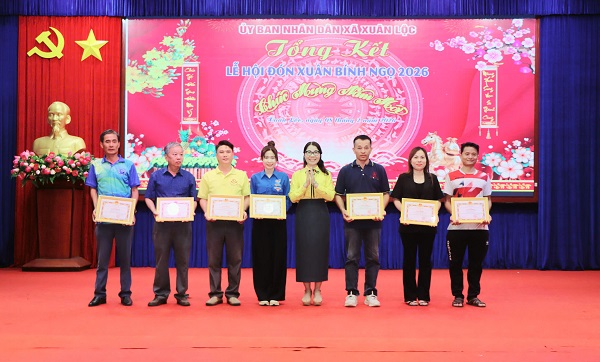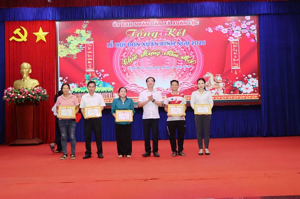 Lãnh đạo xã Xuân Lộc khen thưởng cho các đơn vị, cá nhân đạt giải tại các hoạt động của Lễ hội Xuân Bính Ngọ 2026