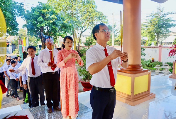 Đồng chí Ngô Thị An, Phó Bí thư Đảng ủy xã và đồng chí Lê Khắc Sơn, Phó Bí thư Đảng ủy, Chủ tịch UBND xã cùng dâng hương tại Đền thờ liệt sĩ Xuân Lộc