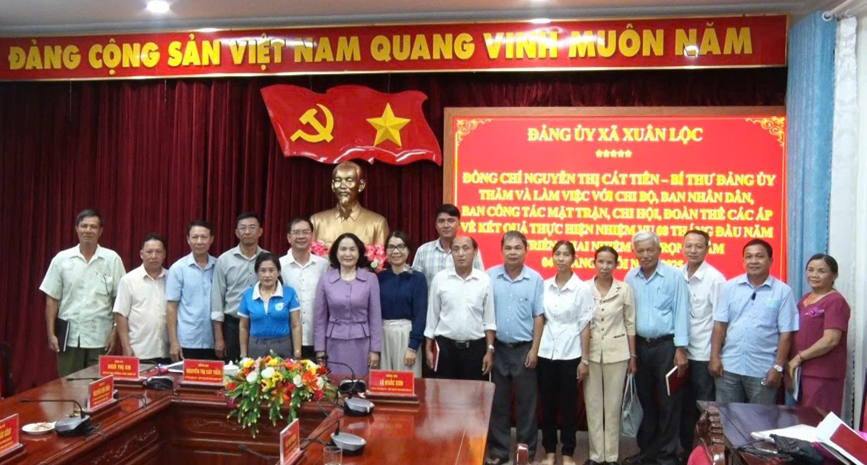 Lãnh đạo xã Xuân Lộc chụp ảnh cùng Chi bộ, Ban Nhân dân, Ban Công tác Mặt trận, chi hội và đoàn thể 8 ấp tại buổi làm việc