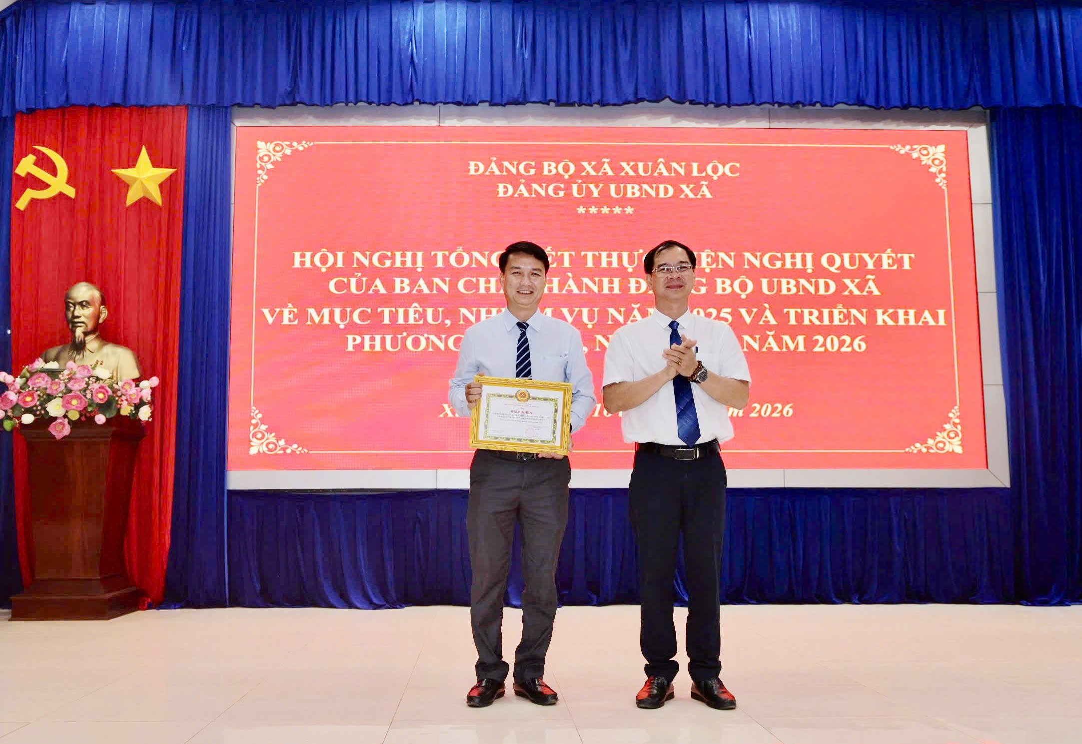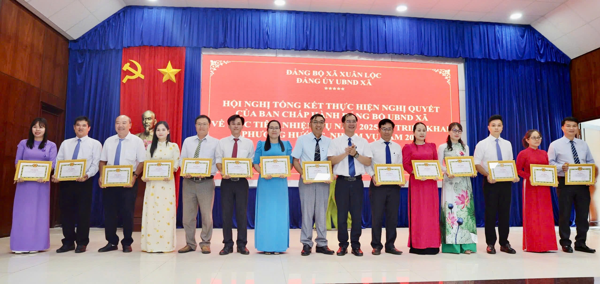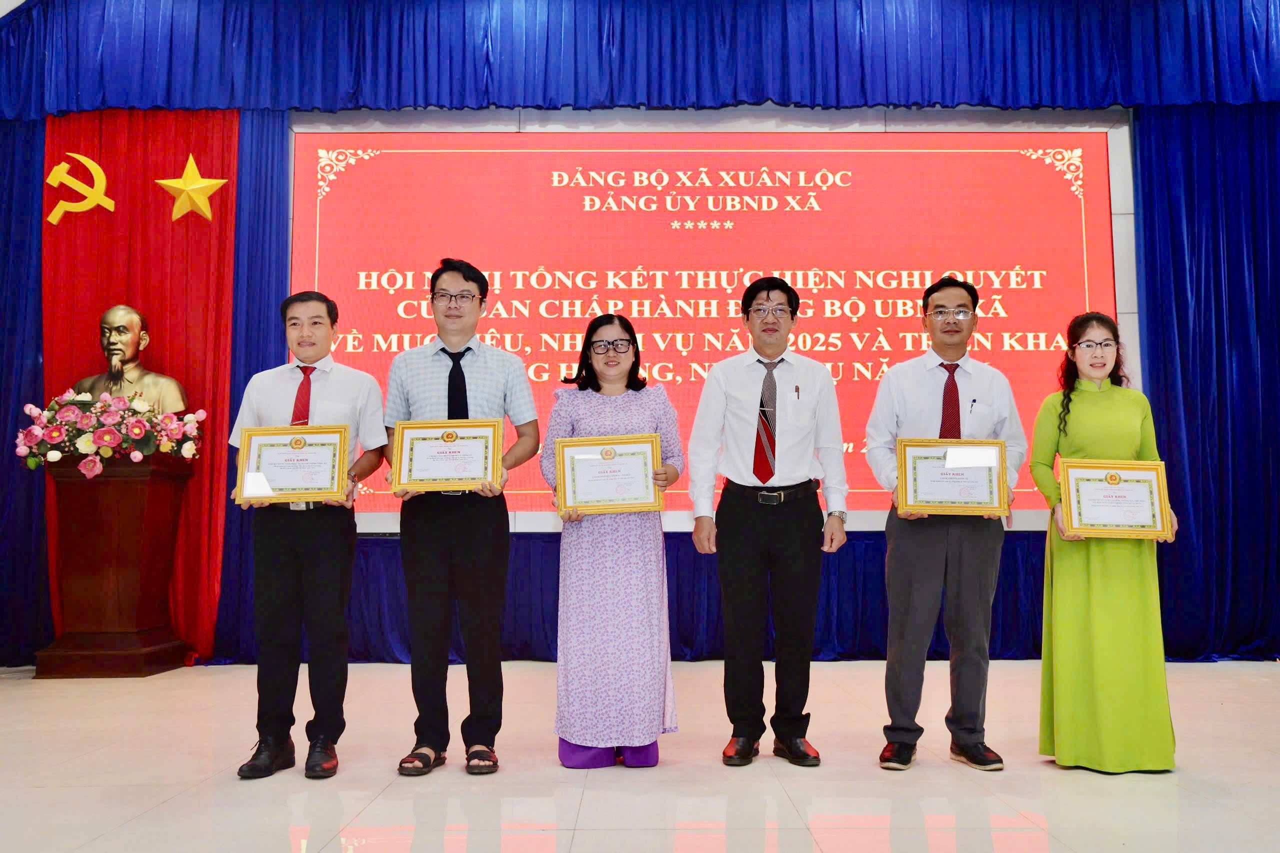 Dịp này, Đảng ủy UBND xã Xuân Lộc đã biểu dương, khen thưởng cho 01 Chi bộ và 17 đảng viên Hoàn thành xuất sắc nhiệm vụ năm 2025; 09 tập thể và 15 cá nhân đạt thành tích xuất sắc trong công tác tham mưu tổ chức Đại hội Đại biểu Đảng bộ UBND xã lần thứ I, nhiệm kỳ 2025 - 2030; công tác xây dựng Đảng, công tác Dân vận; việc học tập và làm theo tư tưởng, đạo đức, phong cách Hồ Chí Minh năm 2025.