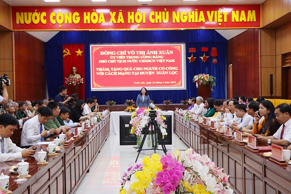 Đồng chí Võ Thị Ánh Xuân, Ủy viên Trung ương Đảng, Phó Chủ tịch nước CHXHCN Việt Nam thăm, tặng quà cho người có công với cách mạng tại huyện Xuân Lộc cũ