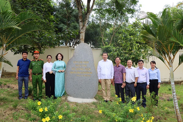 Đồng chí Vũ Hồng Văn, Bí thư Tỉnh ủy – Trưởng Đoàn Đại biểu Quốc hội tỉnh Đồng Nai chụp hình lưu niệm cùng với lãnh đạo xã Xuân Lộc tại gốc cây đồng chí Bí thư trồng lưu niệm tại Đền thờ liệt sĩ trước đó