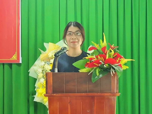 Đồng chí Ngô Thị An phát biểu, ghi nhận và biểu dương những kết quả nổi bật của ấp Tân Tiến trong năm 2025