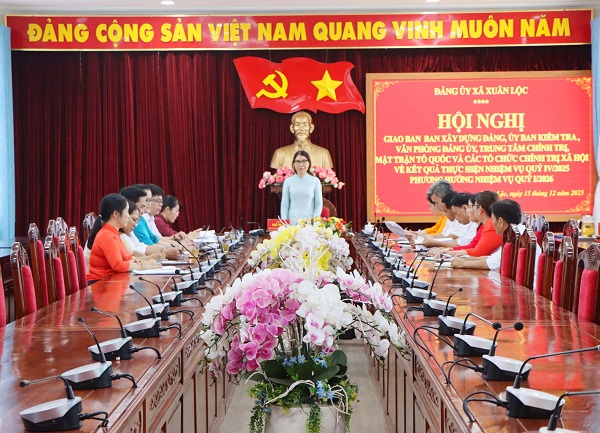Sáng ngày 15/12/2025, đồng chí Ngô Thị An – Phó Bí thư Thường trực Đảng ủy xã Xuân Lộc đã chủ trì buổi giao ban giữa Ban Xây dựng Đảng, Ủy ban Kiểm tra, Văn phòng Đảng ủy, Trung tâm Chính trị, Ủy ban Mặt trận Tổ quốc và các tổ chức chính trị – xã hội của xã nhằm đánh giá kết quả thực hiện nhiệm vụ quý IV năm 2025 và triển khai phương hướng, nhiệm vụ trọng tâm quý I năm 2026.