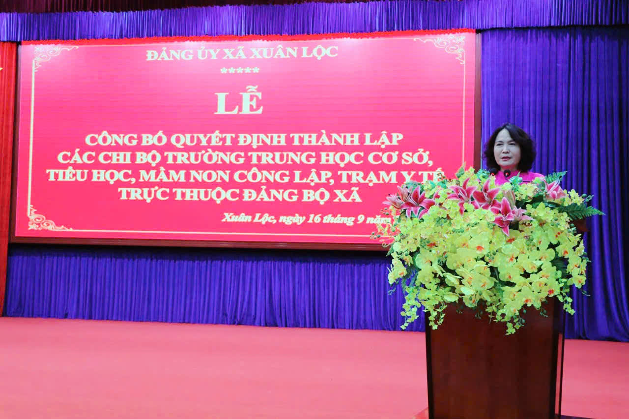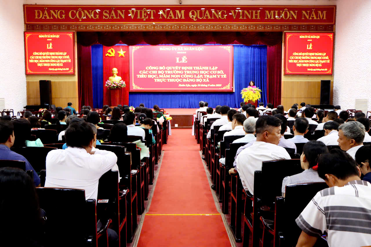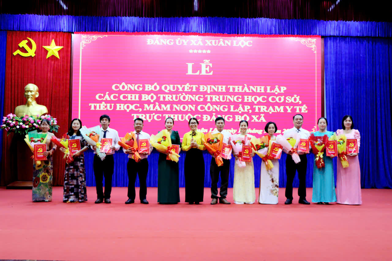Theo đó, Ban Chấp hành Đảng bộ xã quyết định thành lập 22 chi bộ cơ sở trực thuộc, gồm 21 chi bộ các trường trung học cơ sở, tiểu học, mầm non và 1 Chi bộ Trạm Y tế xã; đồng thời công bố các quyết định chỉ định nhân sự Cấp ủy, Bí thư, Phó Bí thư của Trạm Y tế và các chi bộ trường học trên địa bàn. Đến nay, Đảng bộ xã Xuân Lộc có 62 tổ chức cơ sở đảng trực thuộc với 2.384 đảng viên.
