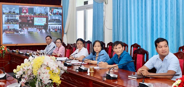 Các đại biểu tham dự hội nghị trực tuyến tại đểm cầu xã Xuân Lộc