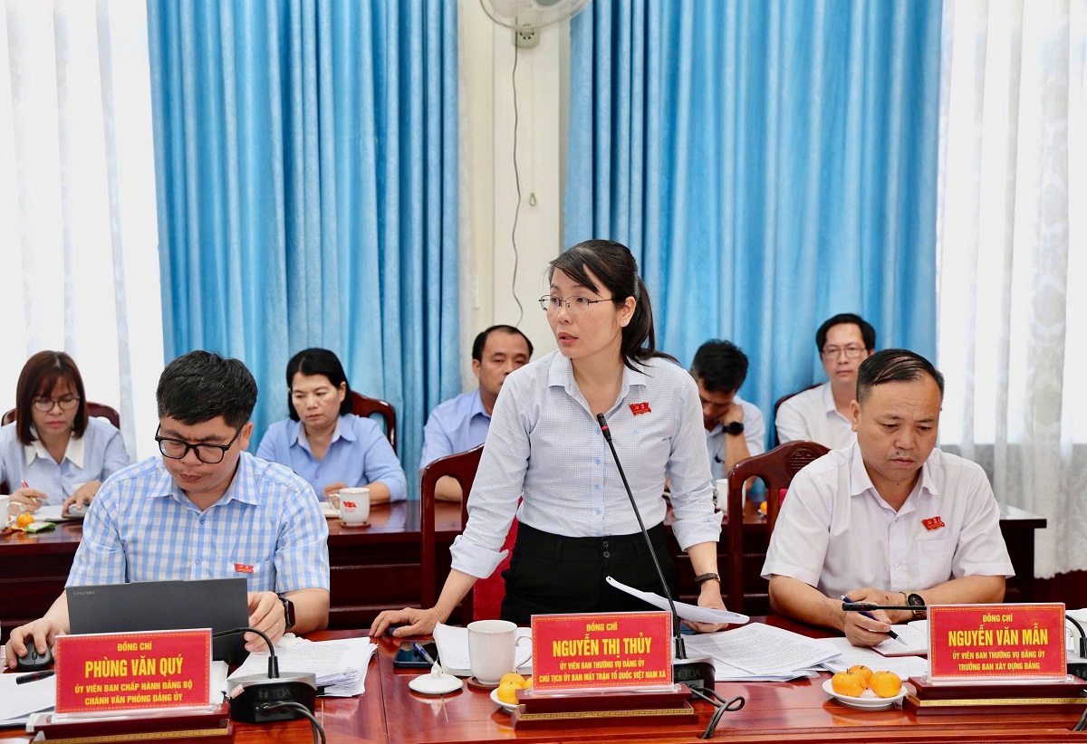 Đồng chí Ngô Thị An, Phó Bí thư Thường trực Đảng ủy xã phát biểu tại hội nghị