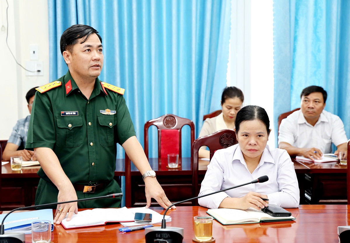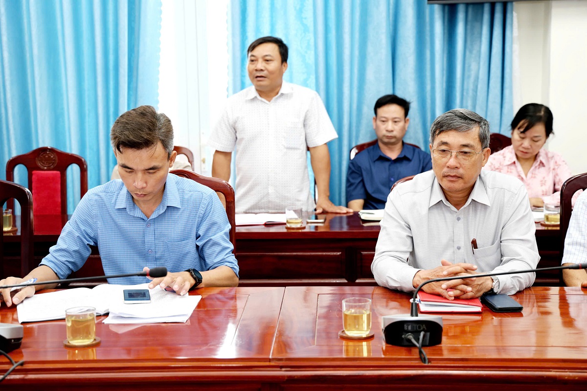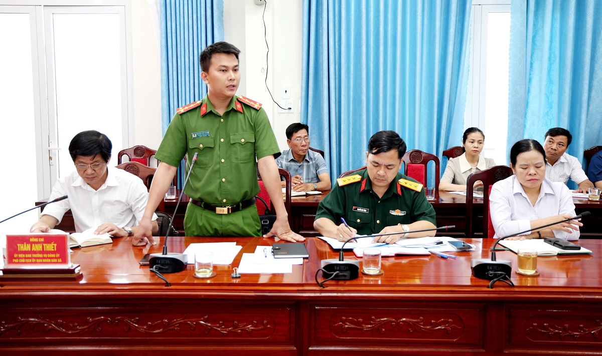 Lãnh đạo xã và các cơ quan, đơn vị phát biểu trao đổi tại hội nghị.