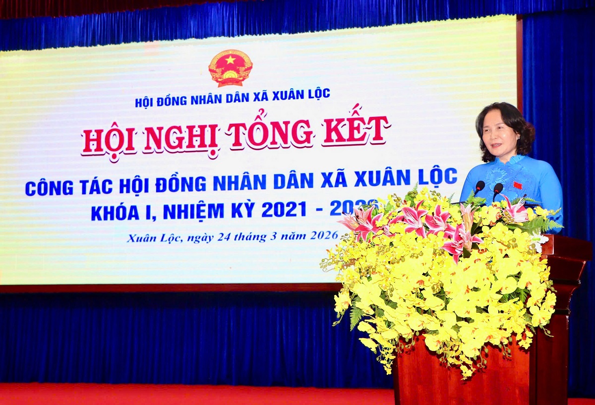 Phát biểu tại hội nghị, Bí thư Đảng uỷ, Chủ tịch HĐND xã Nguyễn Thị Cát Tiên ghi nhận và tri ân những đóng góp của các đại biểu HĐND xã Xuân Lộc khóa I, nhiệm kỳ 2021 – 2026, xứng đáng với niềm tin, kỳ vọng của Nhân dân. Đồng thời khẳng định, sự đoàn kết và tinh thần trách nhiệm của các đại biểu HĐND xã khoá I, nhiệm kỳ 2021-2026 đã góp phần quan trọng vào việc hoàn thành các chỉ tiêu kinh tế - xã hội của xã nhà.